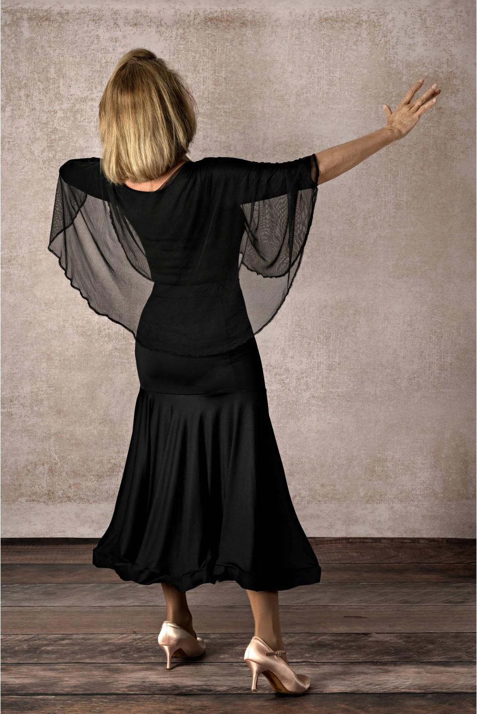 Dieser ¾-Ärmel-Body aus hochwertigem Fitness-Stoff mit eleganter Netz bedeckt sanft die Arme.