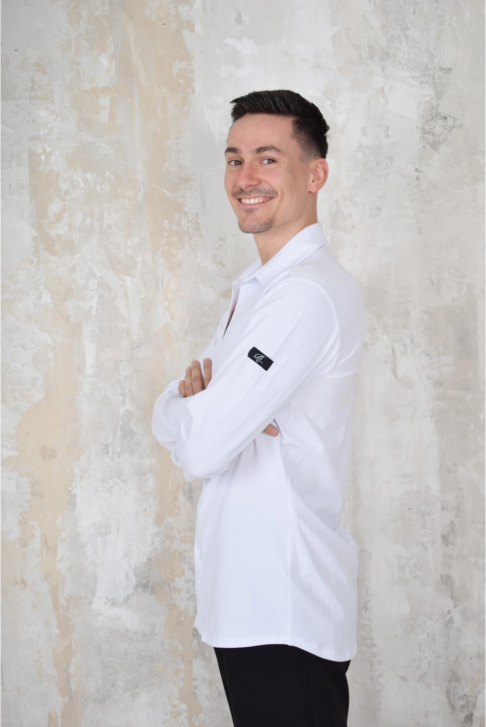 Geknöpftes, lockeres Herrenhemd mit Kragen.