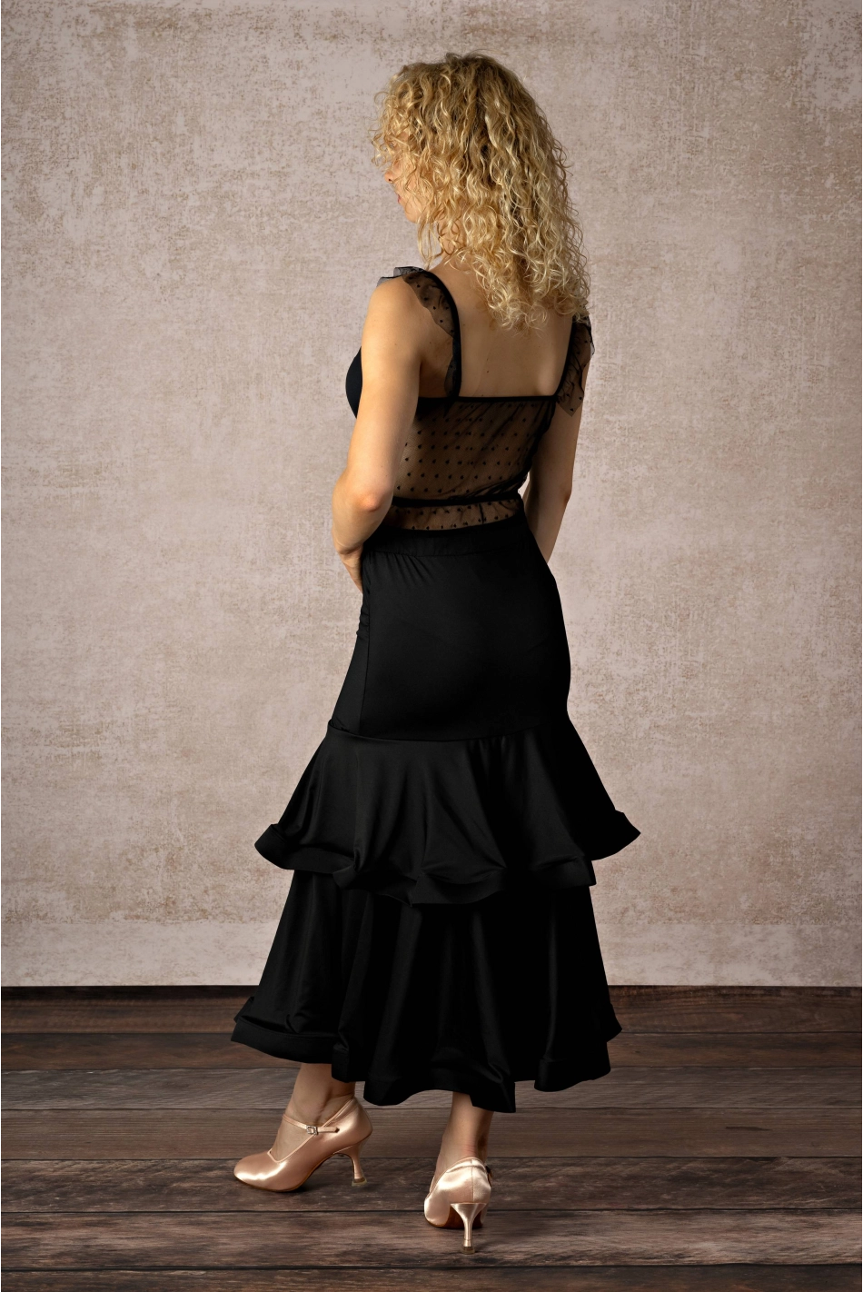 Schöner, elegant geschnittener Standardrock mit doppelter Rüsche. Hergestellt aus hochwertigem Fitness-Stoff.
